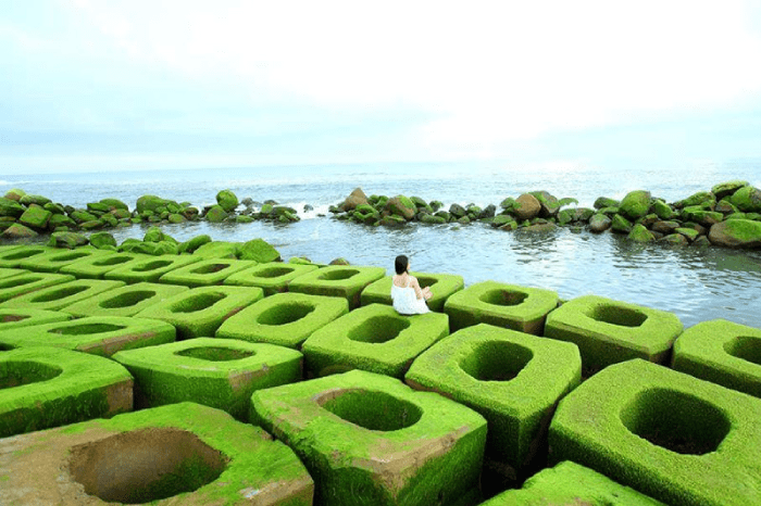 Kè chắn sóng Xóm Rớ được nhiều người biết đến là một địa điểm du lịch Phú Yên mới mẻ, là nơi mà những kè chắn sóng phủ đầy một lớp rêu phong tạo nên cảnh quan rất ấn tượng. Mỗi khi thủy triều rút xuống, những chiếc kè bắt đầu nổi lên mang một màu xanh mướt rất nổi bật, óng ánh dưới ánh nắng mặt trời vàng chói. Khung cảnh này thật sự khiến bất cứ ai khi lần đầu được chiêm ngưỡng cũng đều sẽ trầm trồ mãi không thôi.