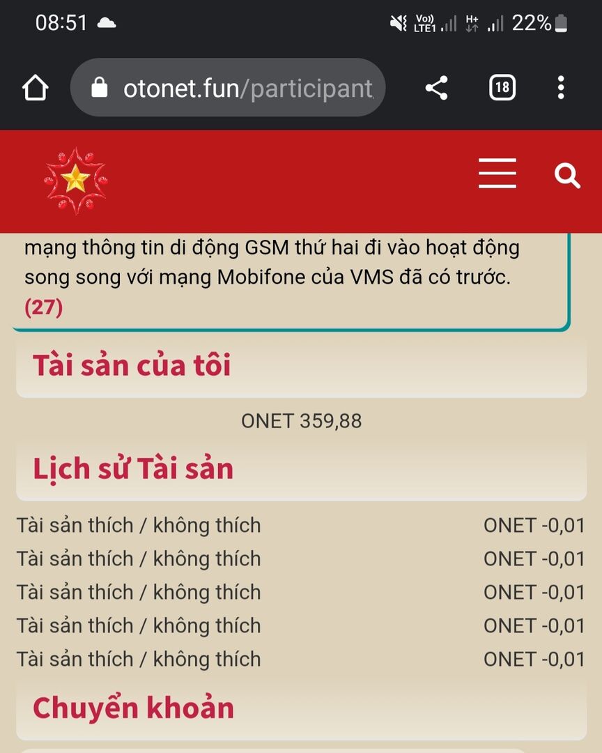 Cụ Chã cho em thắc mắc chút: Từ hôm qua nick của em không đc cộng 1 ONET khi đc like là sao nhỉ? Sáng nay em vào đã 1.812,87, giờ báo thêm 3 like mà điểm vẫn thế? Riêng trừ 0,01 khi em like bài khác thì vẫn trừ đều
