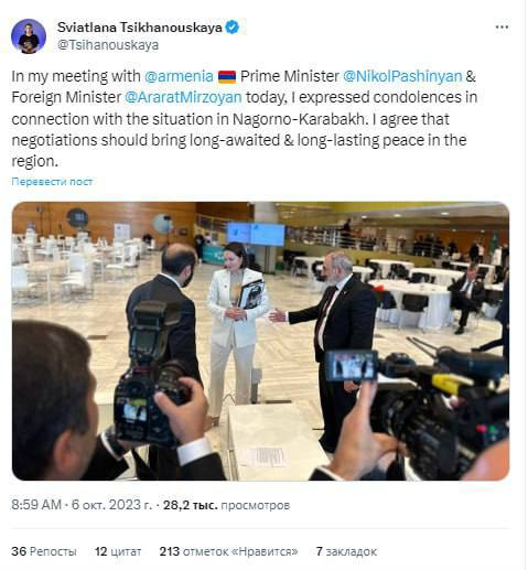 Thủ tướng Armenia đã chọn con đường U cà thứ 2 cho đất nước của mình: đầu tiên vợ ông đến thăm Kyiv, và bây giờ bản thân ông lại tỏ ra nhã nhặn với thủ lĩnh phe đối lập Belarus.