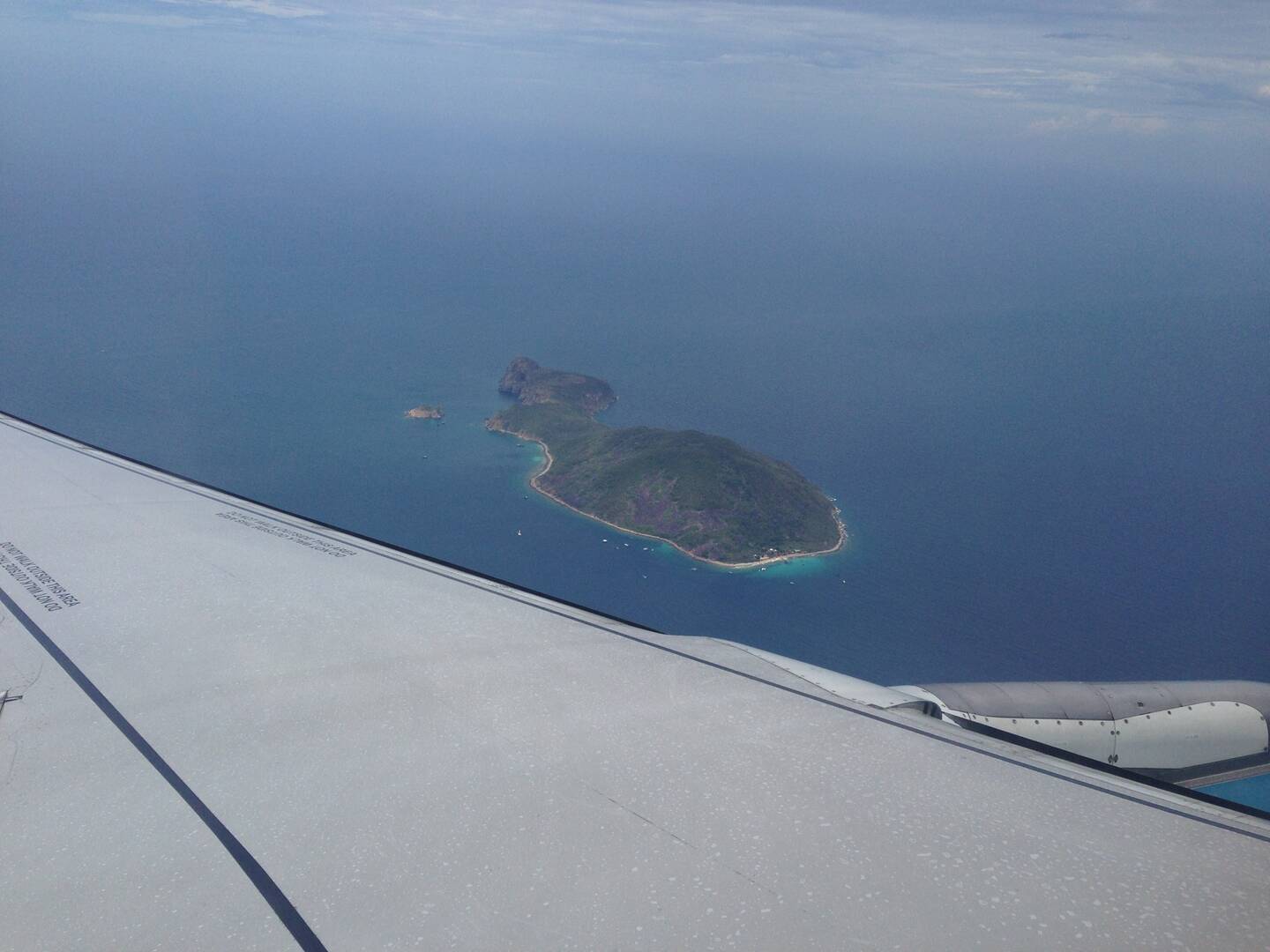 Ảnh 2: Tháng 4-2014 chup trên khoang máy bay, chuẩn bị hạ cánh bay qua một hòn đảo khá đẹp khu vực vịnh Cam ranh-Nha trang (em không rõ là đảo gì, nhìn kỹ thấy có bãi tắm và nhà hàng,ks)