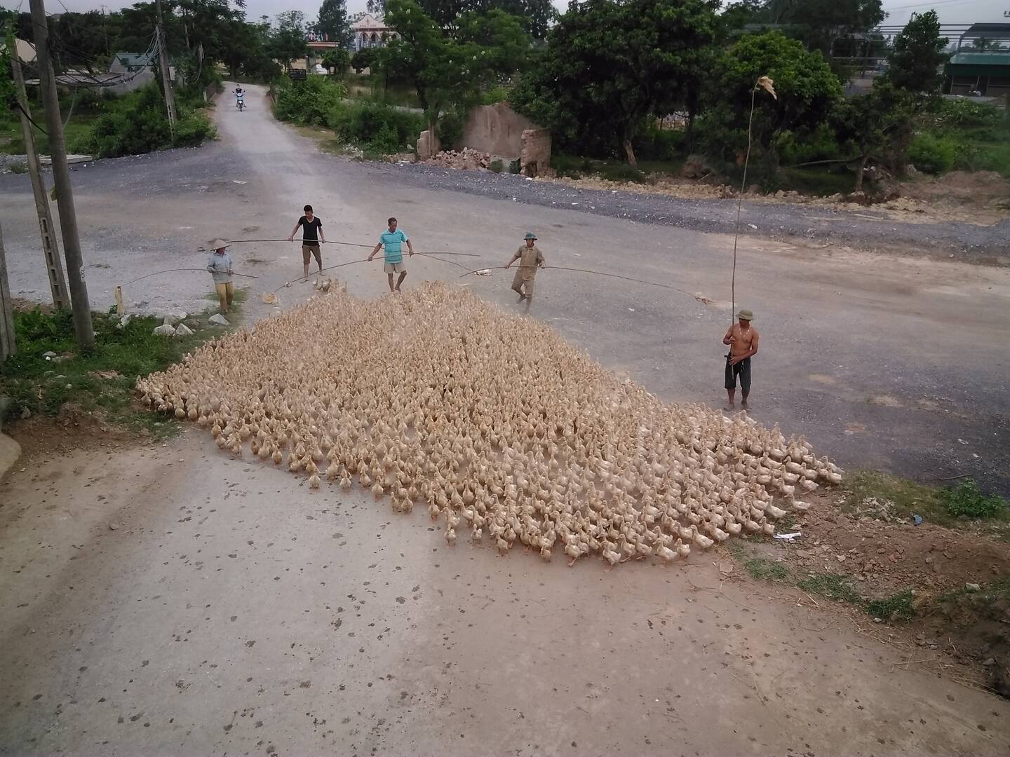 Quá khó để các bác nông dân tách đàn Vịt của ai về nhà ấy (ảnh chụp tháng 06-2016 tại một điểm dừng khẩn cấp CT Pháp vân-NB khu vực đồng văn)