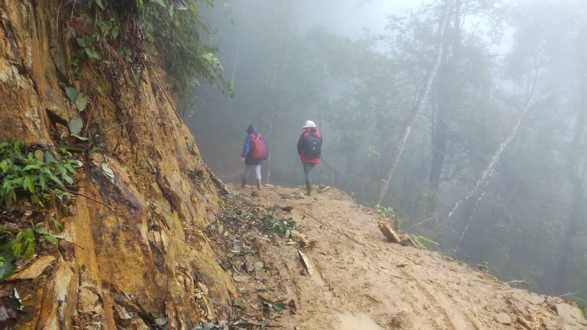 Hai cô giáo đi bộ đến lớp hơn 7km đường lầy lội, vực sâu ở bản Háng đồng-C (xa vậy mà tuần nào các cô cũng đi xe máy từ thị trấn cách đó gần 20km lên dấu xe trong rừng sau đó đi bộ tiếp hơn 7km đến lớp)