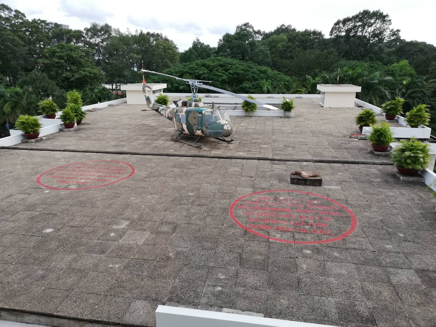 Bãi đậu trực thăng trên tầng thượng tòa nhà phụ phía sau dinh
