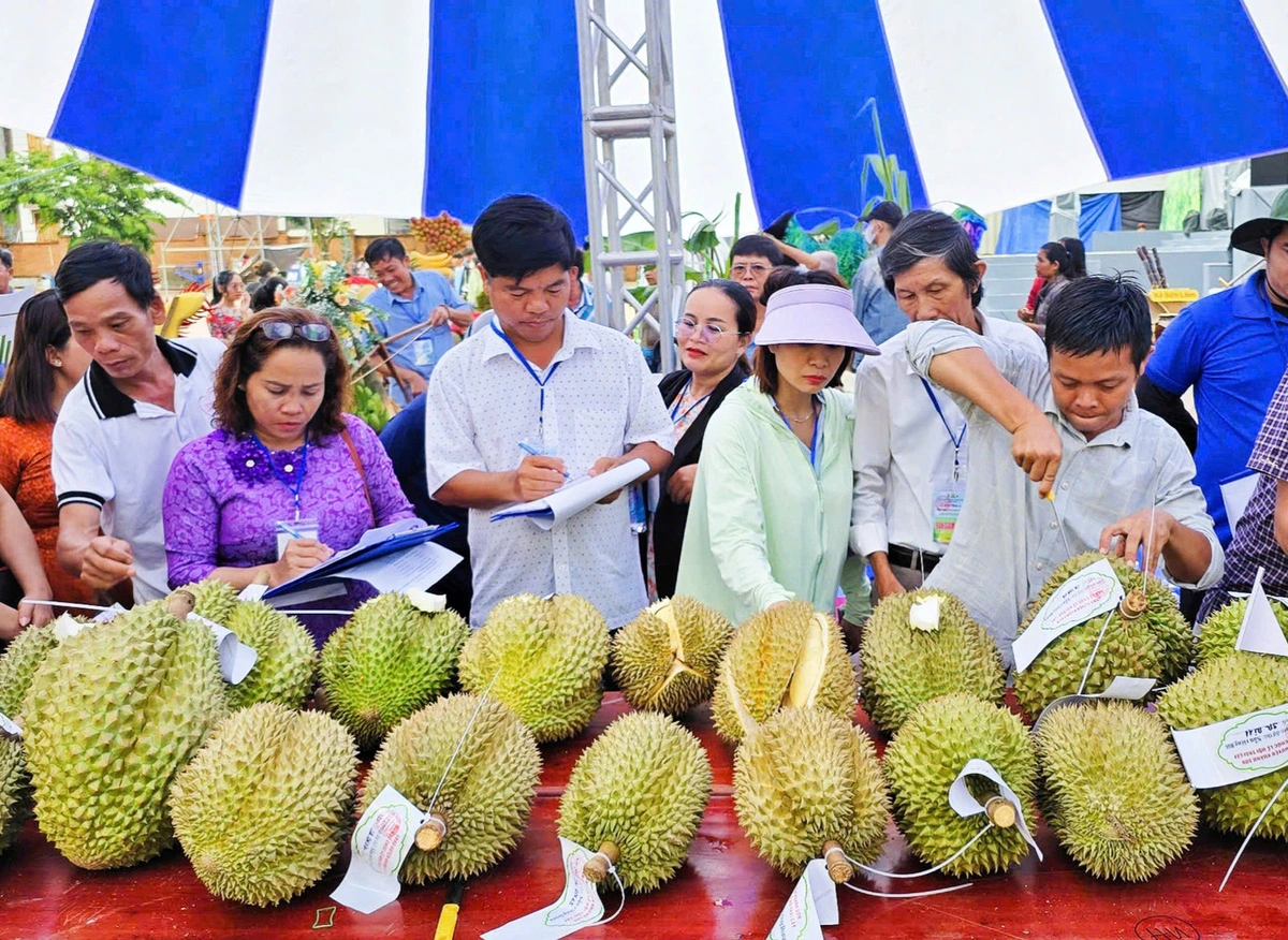 Trong không gian lễ hội, hội thi trái cây ngon và trưng bày nghệ thuật thu hút nhiều du khách khi nhiều người lần đầu được thấy những loại trái cây có kích thước lớn như sầu riêng, bưởi.