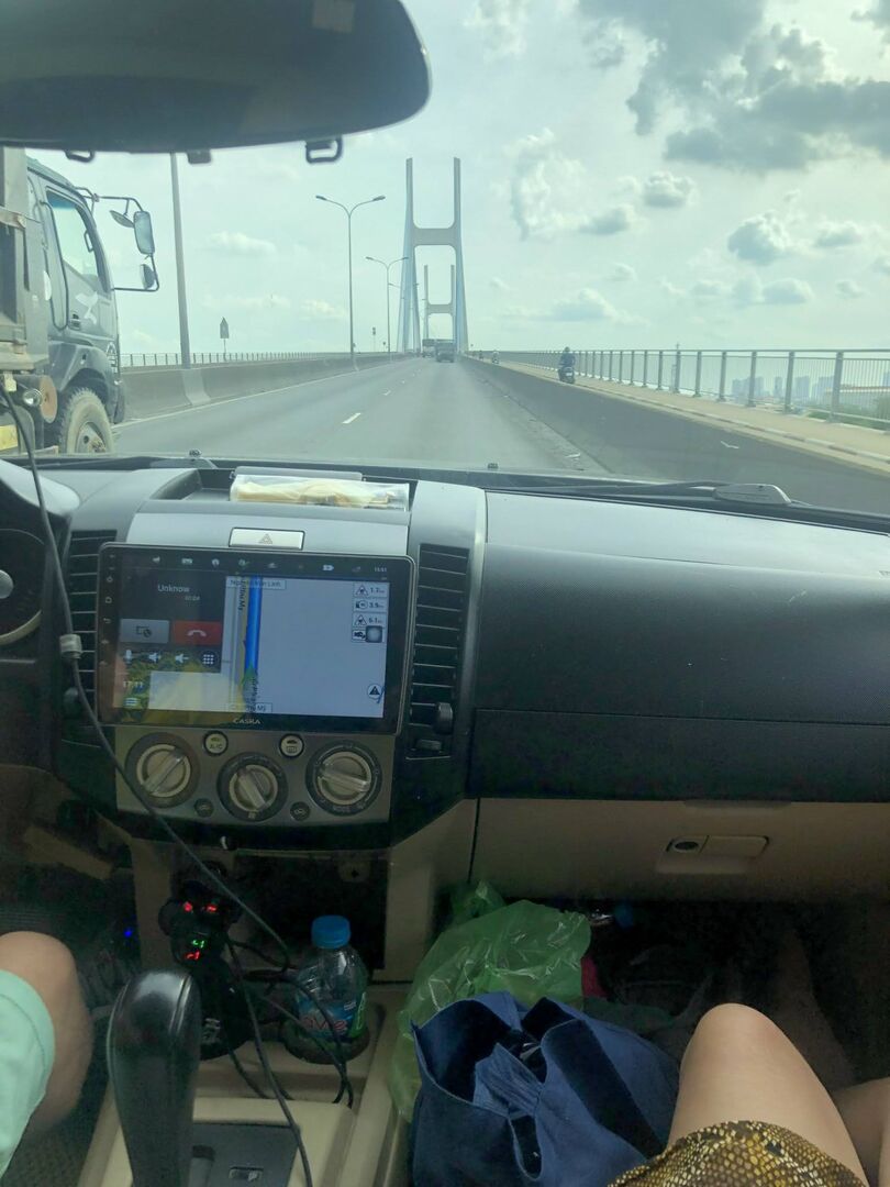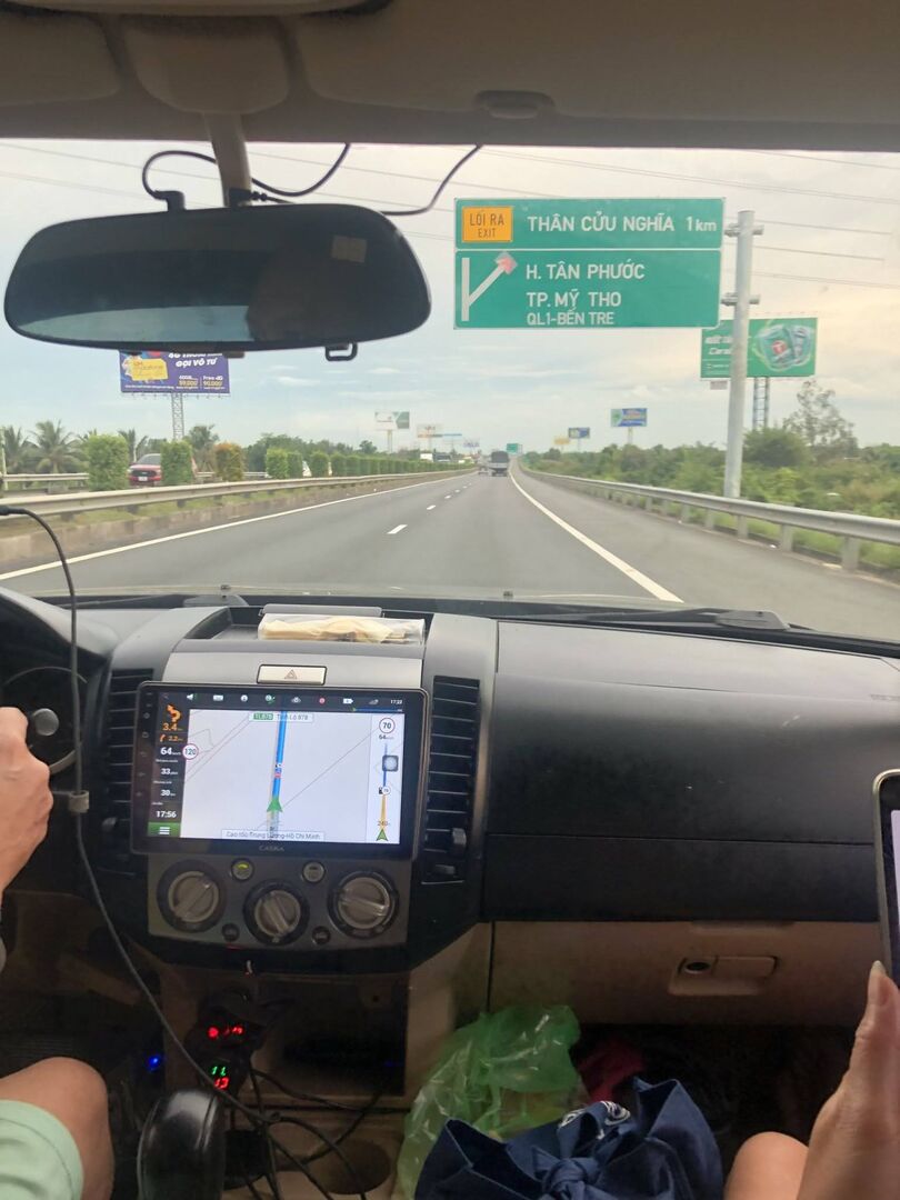 Do đích đến là đất Mũi Cà Mau nên em chọn hành trình là nghỉ tối tại Bến Tre. Do chạy theo Google map mà lại không để ý tải bản đồ về nên khi cục phát wifi nó hết dung lượng thì bản đồ nó đứng im luôn, em bị chạy nhầm đường mất 7km.