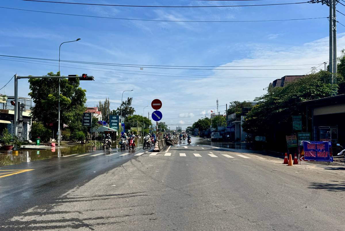 Sau khi kiểm tra hiện trường và đánh giá các yếu tố đảm bảo an toàn, lực lượng chức năng đã dỡ các rào chắn, cho các phương tiện lưu thông trở lại. Tuy nhiên, các xe di chuyển chậm qua vị trí còn ngập nước.