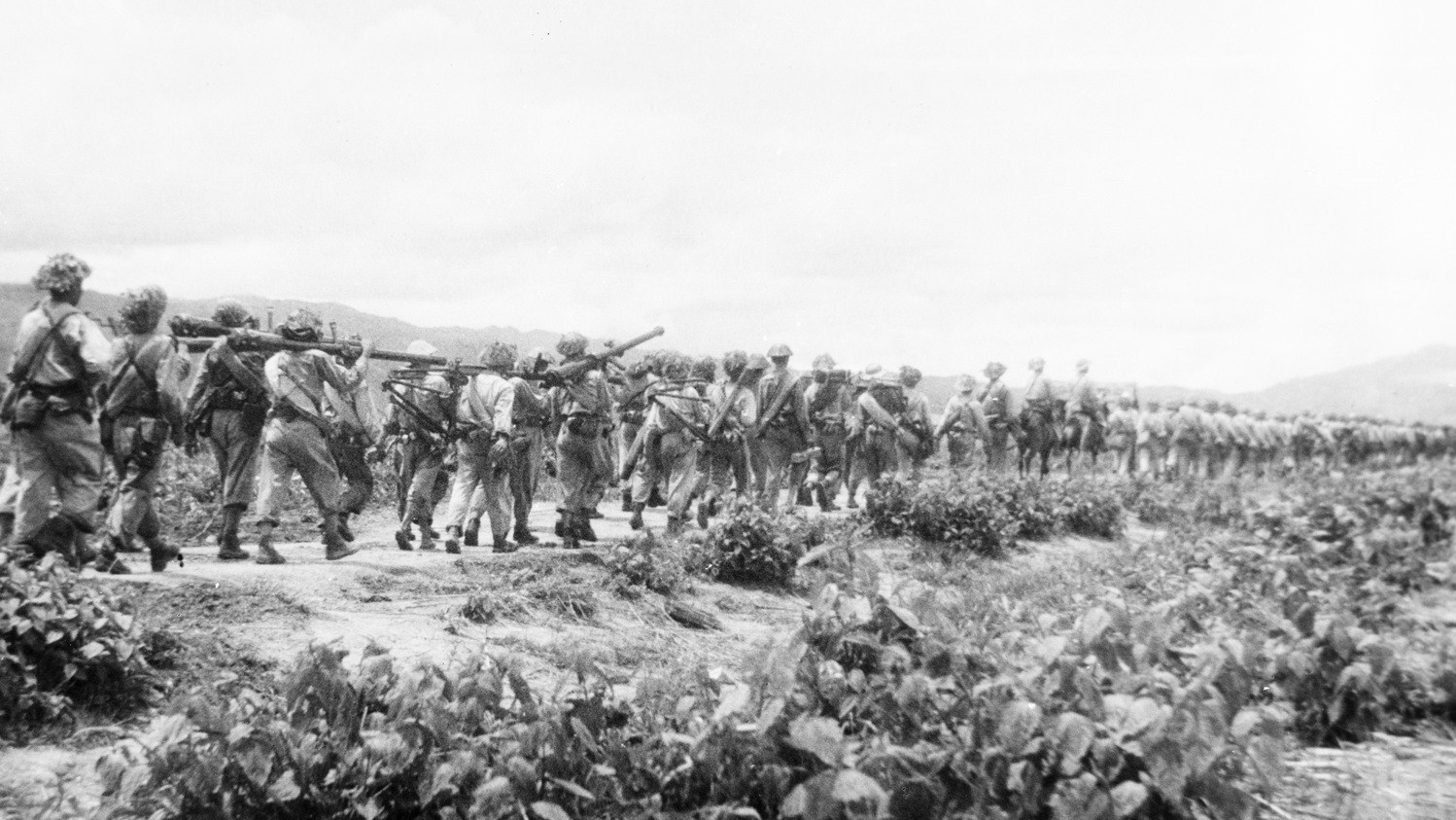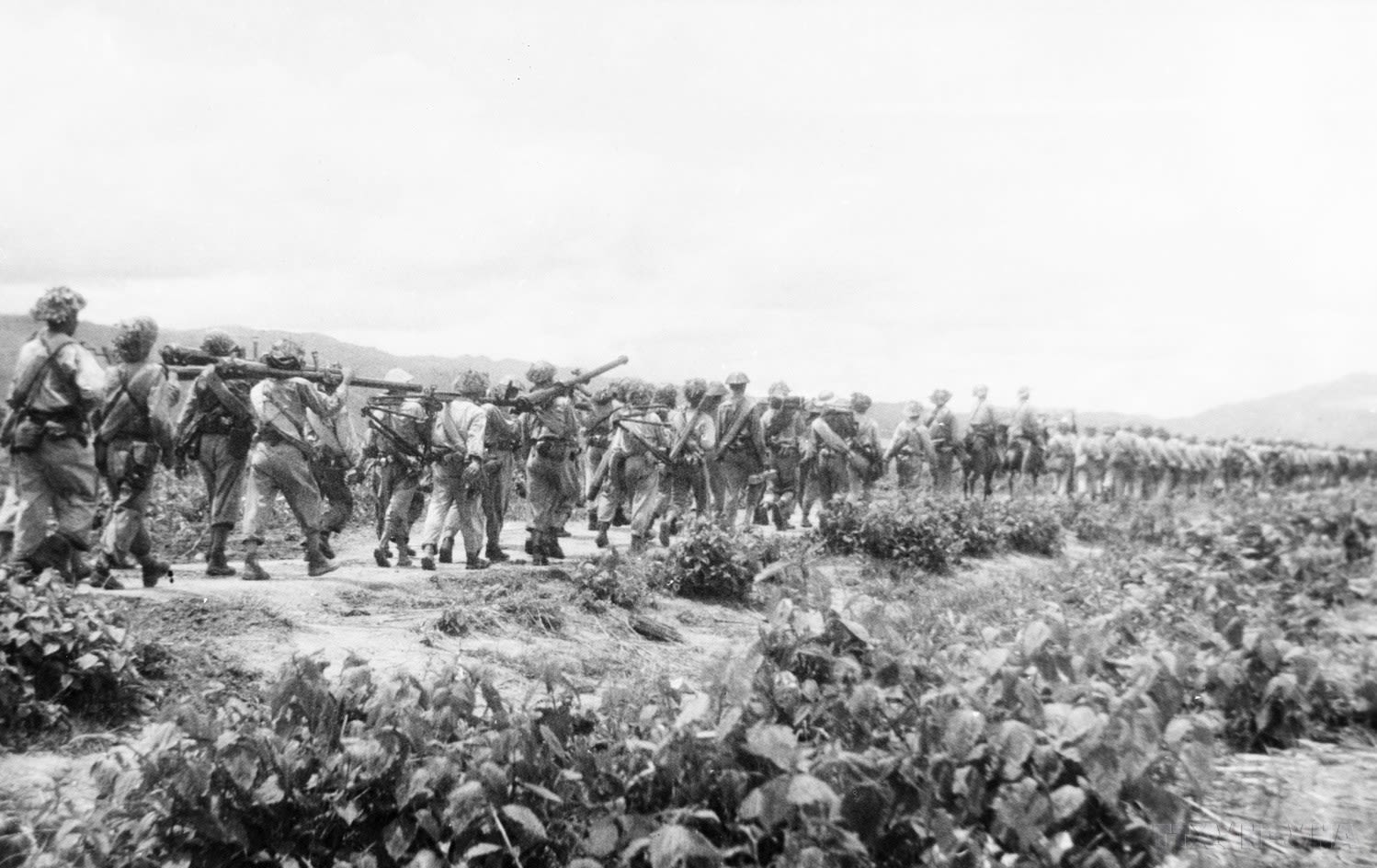 Vâng lệnh Hồ Chủ Tịch, Trung ương Đảng và Chính phủ, các đơn vị bộ đội ta băng rừng, lội suối tiến vào Điện Biên Phủ. Ảnh: TTXVN