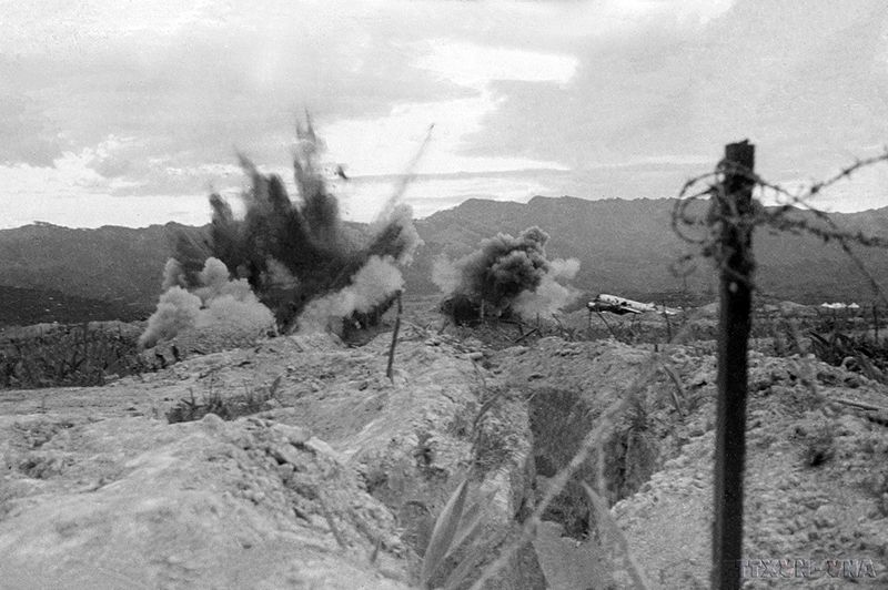 Các đơn vị pháo binh của ta tiếp tục pháo kích vào các vị trí của địch. Các vị trí của địch bị trúng đạn pháo đang bốc cháy. (Ảnh: TTXVN)