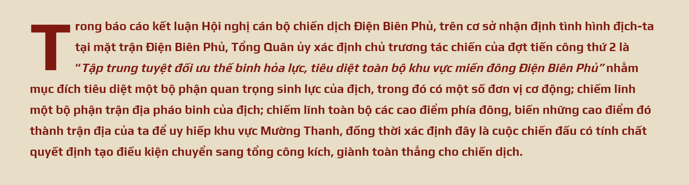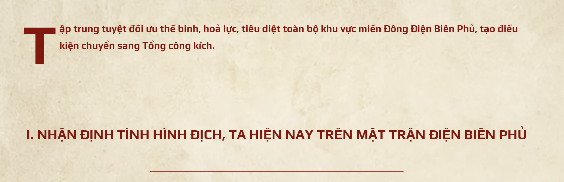 Như vậy để tạo điều kiện đầy đủ cho quân ta chuyển sang tổng công kích, tiêu diệt toàn bộ quân địch ở Điện Biên Phủ.