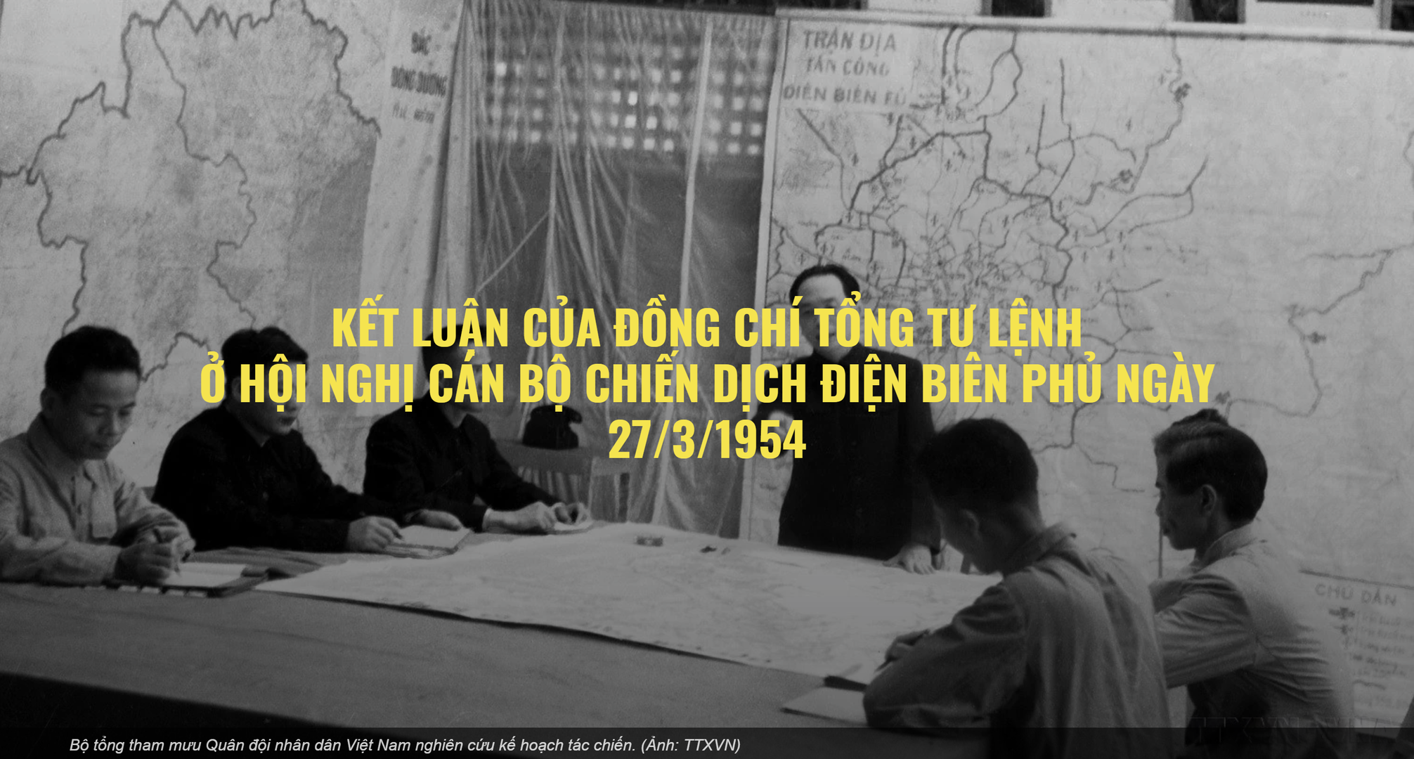 Nguồn: Điện Biên Phủ Văn kiện Đảng, Nhà nước, Nxb Chính trị quốc gia, Hà Nội, 2004, tr.688-693; Đại tướng Võ Nguyên Giáp, Báo cáo về kế hoạch tác chiến và tổng kết kinh nghiệm trong các chiến dịch lớn, Tập III: Chiến dịch Điện Biên Phủ, Bộ Tổng Tham mưu xuất bản, tr.107-116. Trình bày: ANH NGỌC Ảnh: TTXVN