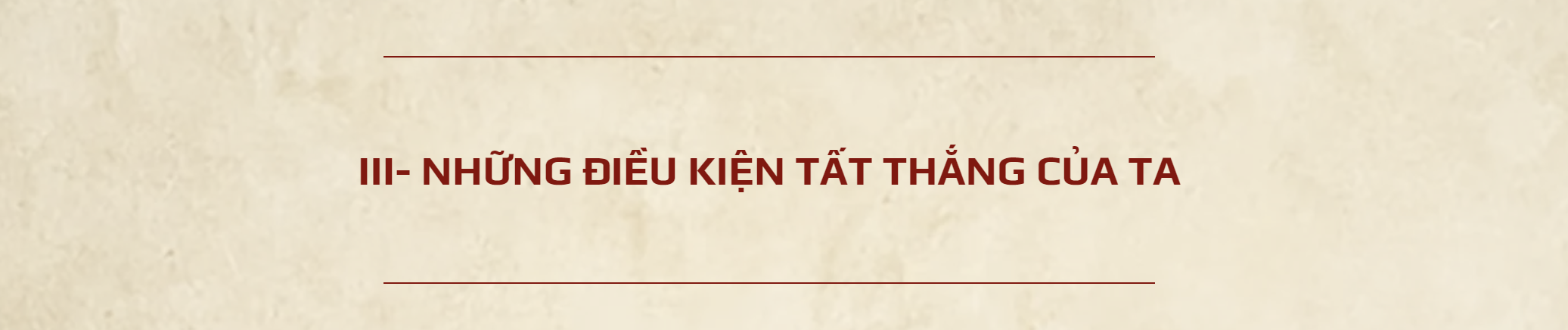 2. Chúng ta có một trận địa bao vây và tấn công vừng chắc, như vậy có thể bảo đảm cho quân ta nắm vững phương châm "đánh chắc, tiến chắc" mà tấn công quân địch. 3. Cán bộ và chiến sĩ của ta qua những cuộc chiến đấu và cuộc xây dựng trận địa vừa qua, đã thêm nhiều kinh nghiệm, nâng cao tin tưởng, do đó quyết tâm diệt địch được vững chắc hơn trước.
