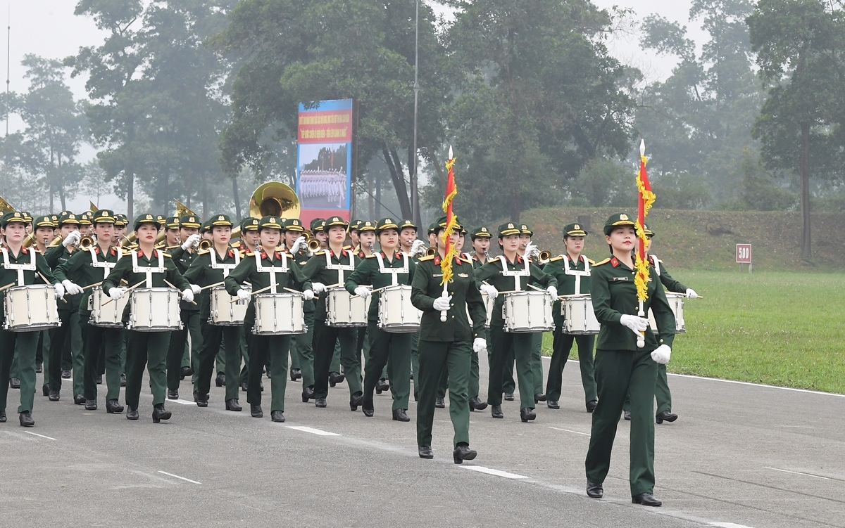 Khối nữ Quân nhạc Việt Nam cùng những âm thanh hùng tráng, ngân vang trong lễ diễu binh.