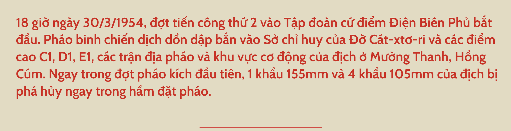 Ngày 28/3/1954, Bộ Tổng Tư lệnh ra mệnh lệnh số 83-ML/B1, trong đó xác định quyết tâm của Bộ trong đợt tiến công thứ 2 là “Tập trung ưu thế tuyệt đối binh hỏa lực, tiêu diệt toàn bộ khu vực phía đông Mường Thanh, tạo điều kiện đầy đủ cho quân ta chuyển sang tổng công kích tiêu diệt toàn bộ quân địch ở Điện Biên Phủ”. Chỉ thị giao nhiệm vụ cụ thể cho các đơn vị: