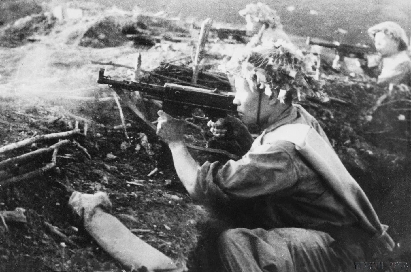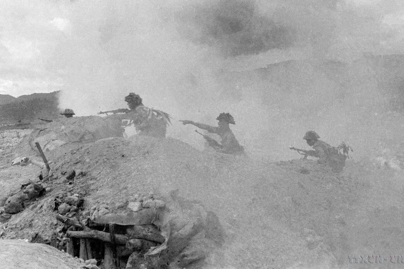 Các đơn vị xung kích của ta đang tấn công địch trên đồi A1. (Ảnh: Tư liệu TTXVN)