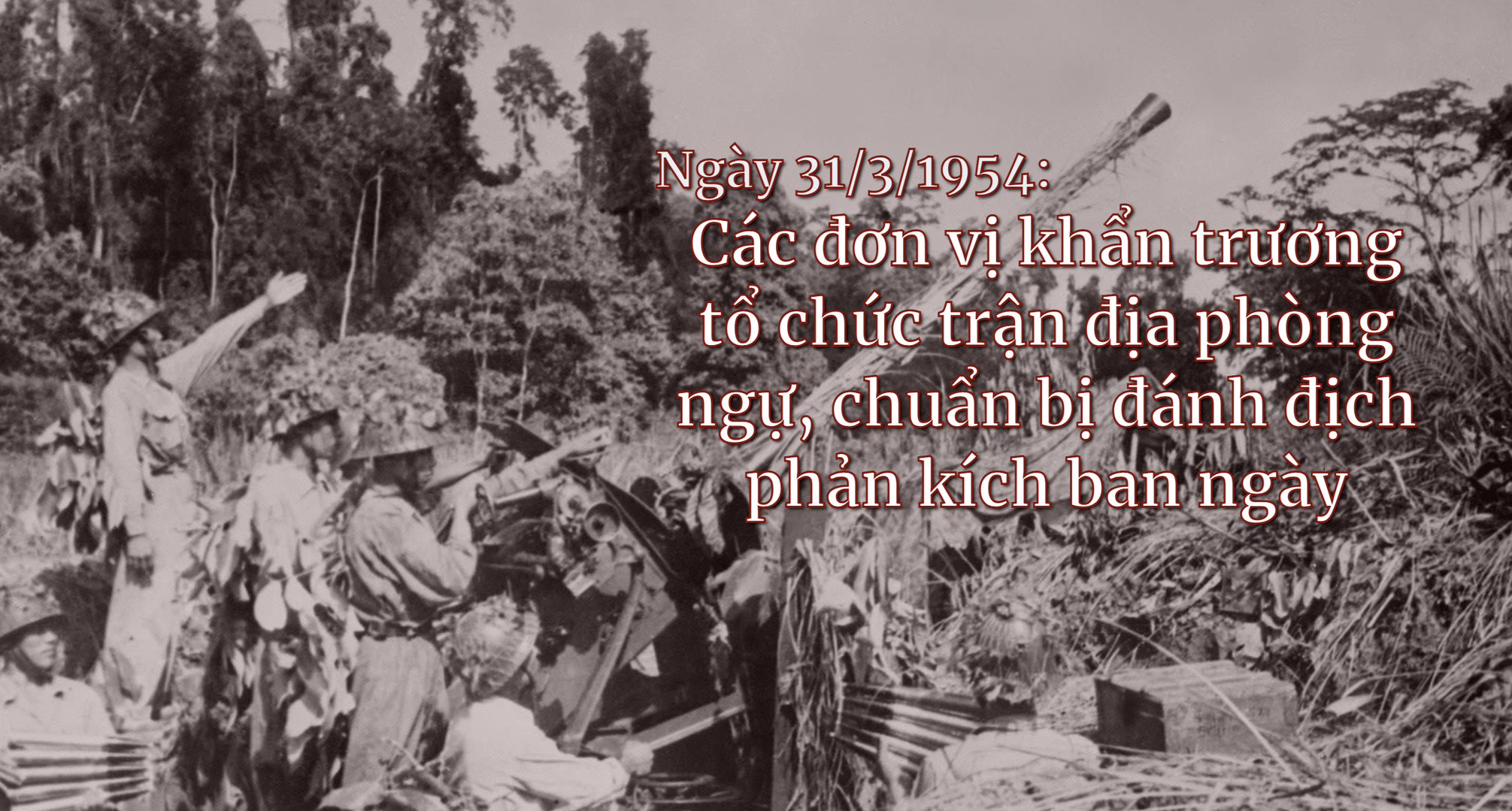 Phía địch: Mờ sáng 31/3, Bộ chỉ huy Pháp ở Điện Biên Phủ họp bàn cách đối phó với tình hình. Lănggơle đề nghị tập trung toàn bộ binh đoàn không vận số 2, gồm tiểu đoàn dù số 1, tiểu đoàn dù số 8, một bộ phận của tiểu đoàn dù số 5, cùng với tiểu đoàn lê dương số 3 và xe tăng từ Hồng Cúm tới để tiến hành phản kích. Toàn bộ lực lượng pháo cũng như xe tăng của tập đoàn cứ điểm sẽ được huy động vào cuộc phản kích.