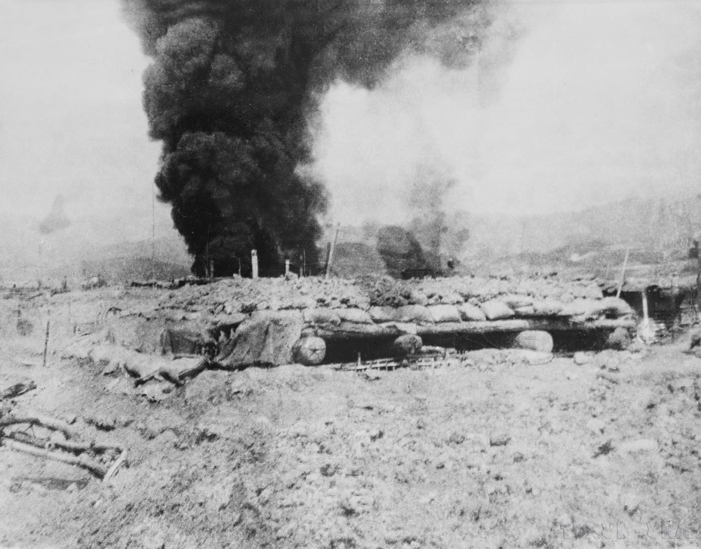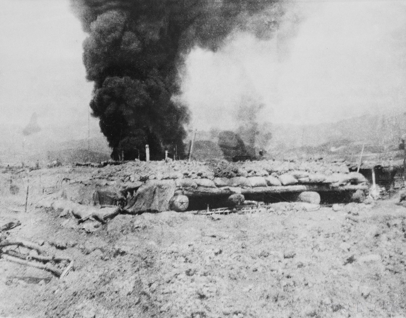 Các đơn vị pháo binh của ta tiếp tục pháo kích vào các vị trí của địch. Các vị trí của địch bị trúng đạn pháo đang bốc cháy. (Ảnh: TTXVN)