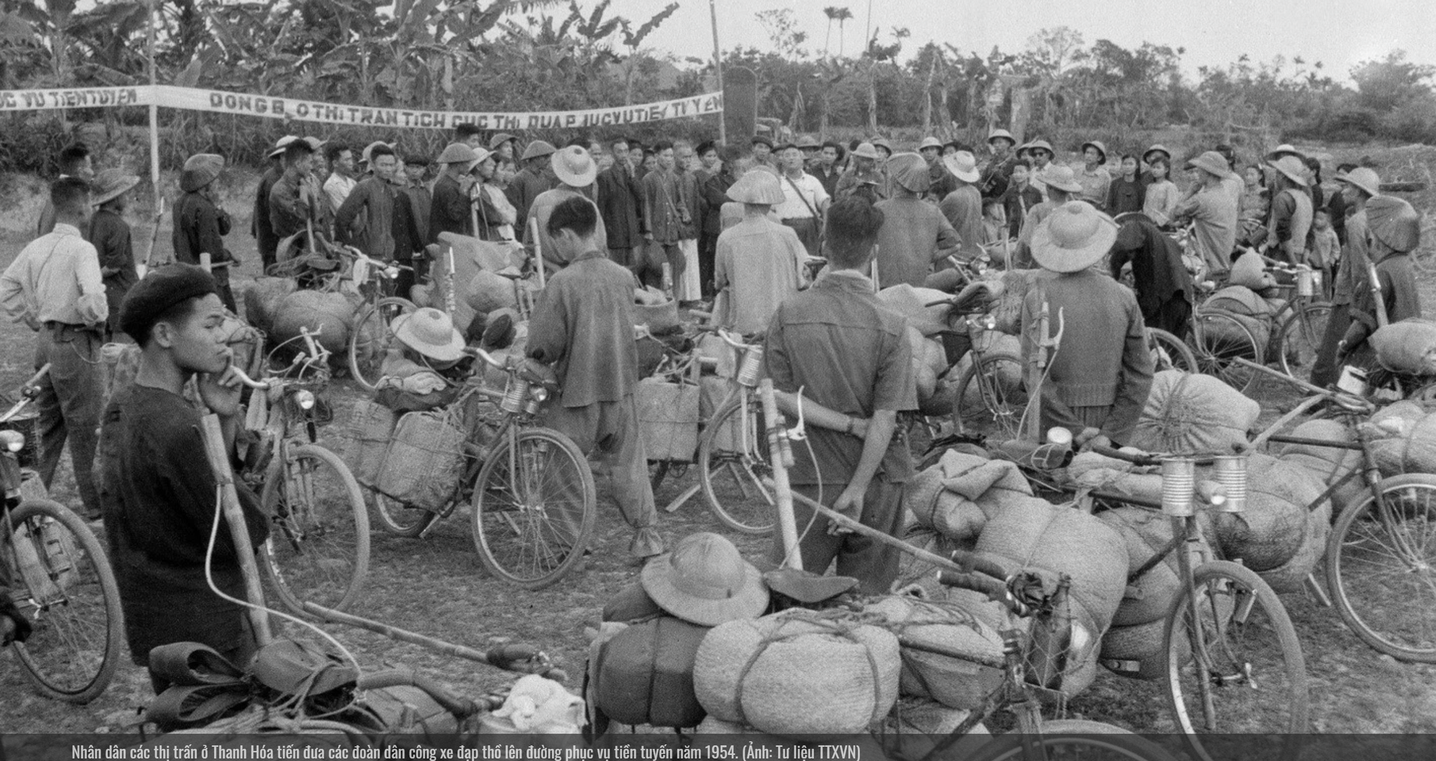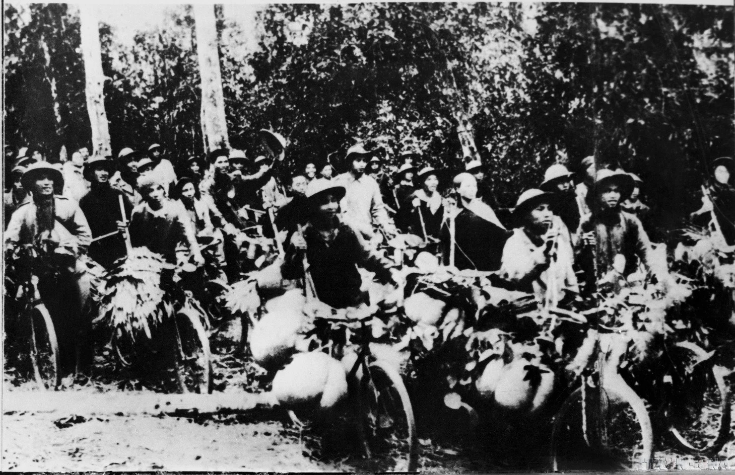 Đoàn dân công xe thồ phục vụ tiền tuyến. Ảnh: TTXVN
