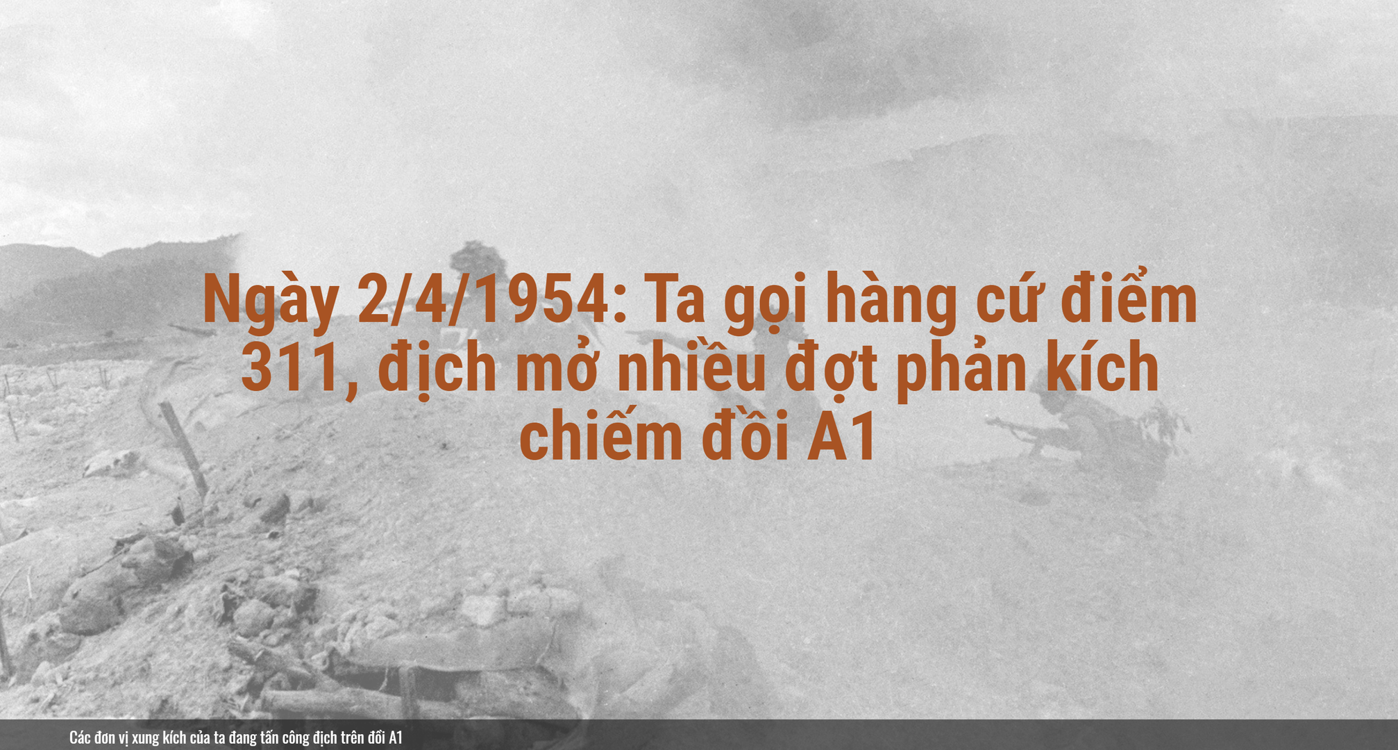 Đầu tiên là đào hầm cá nhân để tránh pháo của địch, sau đó là đào hầm nối hầm cá nhân này với hầm cá nhân khác để tạo thành hình những chữ Z nối dài. Đêm 30/3/1954 là đêm diễn ra trận đánh đầu tiên trên đồi A1. Tiếp đó, từ ngày 31/3, quân ta chiếm một nửa quả đồi, địch một nửa quả đồi, khoảng cách gần nhau. Địch phòng thủ còn bộ đội ta quyết tâm chiếm toàn bộ quả đồi, quyết tâm giành chiến thắng. Cứ như vậy, anh em, đồng đội chúng tôi kề vai, sát cánh cùng nhau chiến đấu với quân địch trong suốt mấy chục ngày đêm.