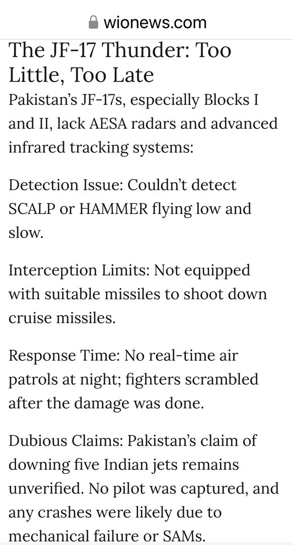 Toàn bộ các máy bay chiến đấu bị bắn hạ của Ấn Độ đều bị hạ trong trạng thái vừa cất cánh, còn đang trong không phận của Ấn Độ và chưa kịp tiếp cận mục tiêu bên Pakistan, nhưng đã bị không quân Pakistan - cũng đang trong không phận của Pakistan - ra tay trước bắn hạ. PL-15E do Trung Quốc cung cấp sang cho Pakistan là tác giả, phía Ấn Độ cũng đã tìm thấy những mảnh vỡ còn lại của ít nhất 2 tên lửa PL-15E trong lãnh thổ Ấn Độ, mã hiệu liên tiếp nhau, điều này cho thấy khả năng trong cuộc tấn công đó, các máy bay của Pakistan đã nhanh chóng khoá mục tiêu và xả hết số tên lửa mang theo, dẫn tới có những tên lửa không tìm thấy mục tiêu do mục tiêu đã bị hạ và dẫn tới tự huỷ. Tầm bắn 200km của PL-15E cộng với radar phòng không bao phủ của Pakistan đang là vấn đề với Ấn Độ. Nếu như suy luận phòng không của Trung Quốc sang hỗ trợ Pakistan thì đây sẽ là thuần tuý một cuộc đọ sức giữa hệ thống phòng không không quân của Trung Quốc với hệ thống không quân của phương Tây và Nga. Đương nhiên các phiên bản xuất khẩu khác với các phiên bản nội địa, nhân tố con người và kế hoạch phối hợp tác chiến là các nhân tố ảnh hưởng sâu sắc đến kết quả chiến đấu, nhưng cho dù giải thích kiểu gì đi chăng nữa, năng lực vũ khí của Trung Quốc đang được chứng minh rất tốt trong cuộc xung đột này, đặc biệt là tác chiến điện tử.