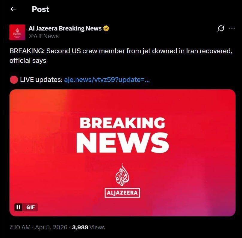 Cuộc đấu súng dữ dội giữa Mỹ và Iran, trong đó phi công F-15 trú ẩn — các báo cáo/hình ảnh chưa được xác minh từ Tabz. Thế này thì khó cho Mỹ rồi, rất đông người dân Iran đang trong khu vực.