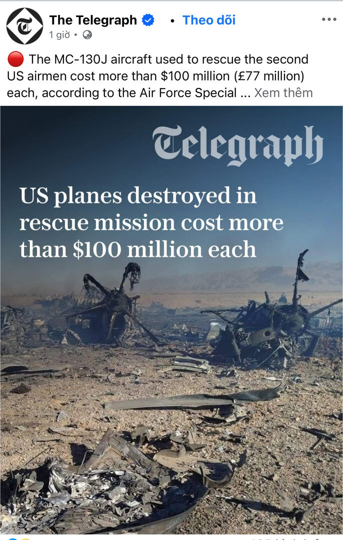 Khả năng là dính đạn không thể cất cánh lại nổi nên Mẽo tự đe le te :v phía Mẽo báo do kẹt bùn cát lún nhưng thực địa thì không thấy có bùn cát nào nên em nghiêng về khả năng dính đạn