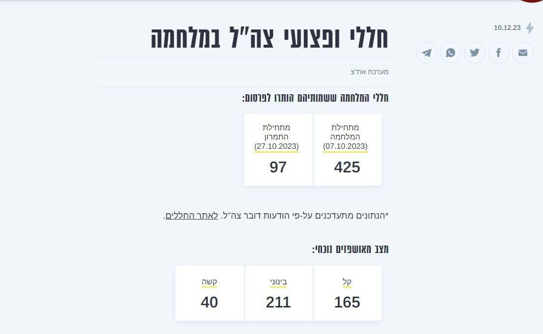 ➡️425 lính Israel đã thiệt mạng, trong đó có 93 người kể từ khi bắt đầu cuộc tấn công ở Dải Gaza