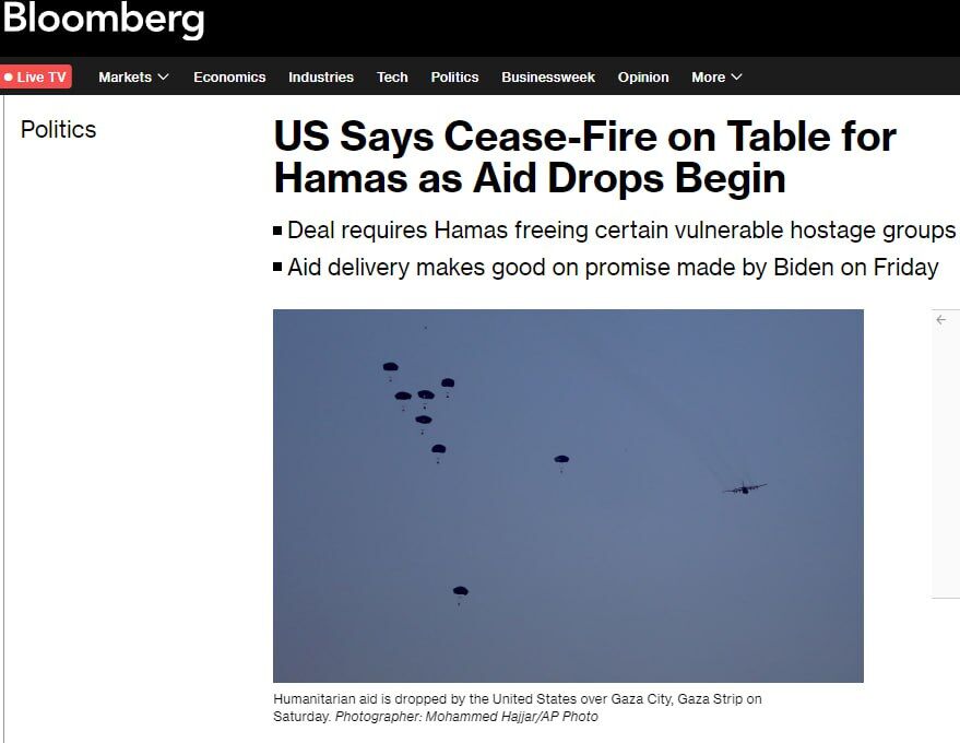 Israel về cơ bản đã đồng ý ngừng bắn trong 6 tuần nếu Hamas đồng ý thả các con tin được xếp vào nhóm dễ bị tổn thương, các quan chức Mỹ cho biết, sau khi máy bay của Mỹ và Jordan hoàn thành việc thả lương thực ở Gaza, cơ quan này đưa tin.