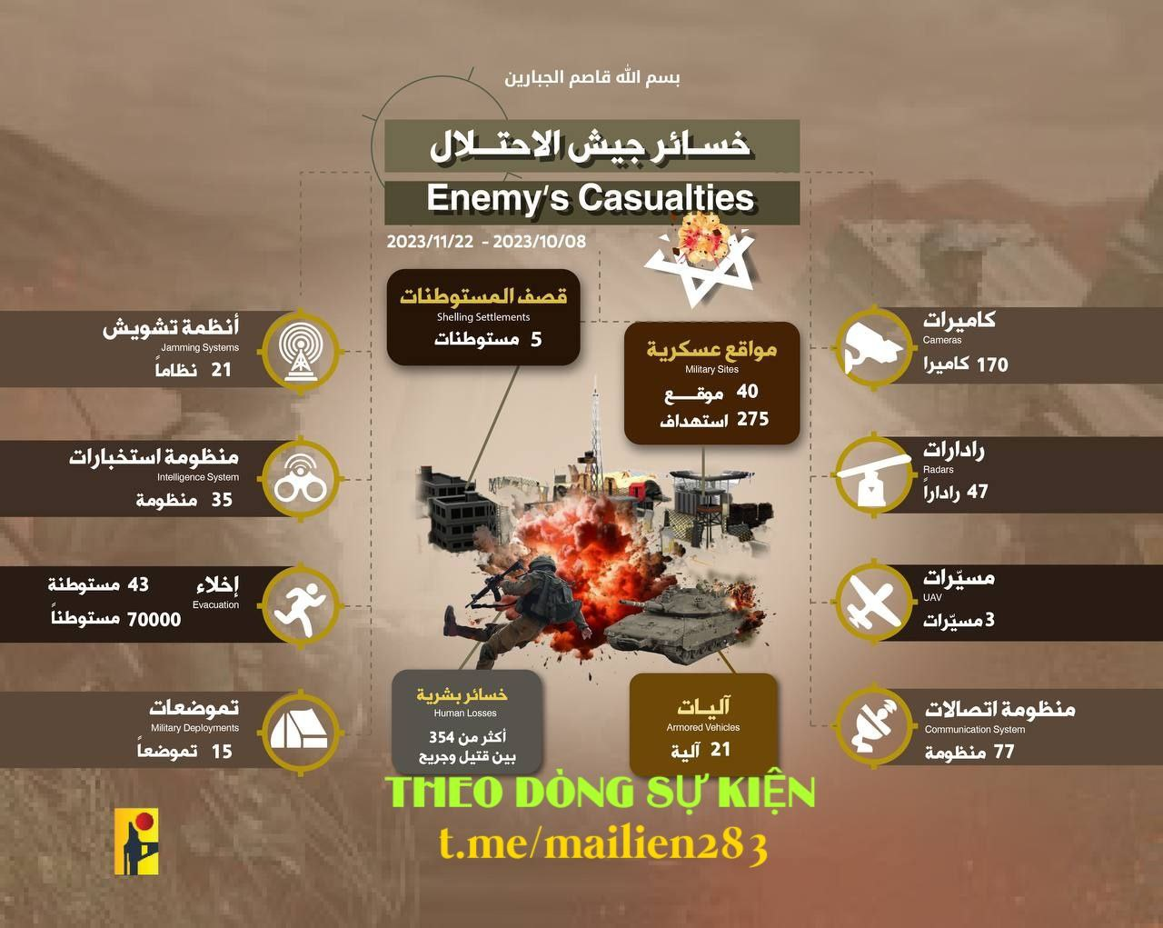 Chỉ riêng trong ngày 22 tháng 11, Hezbollah đã tấn công Israel 15 lần, tấn công một căn cứ hậu cần của IDF, nơi tập trung thiết bị và phương tiện vận chuyển cũng như địa điểm cho nhân viên của các đơn vị biên giới, tại ít nhất 3 khu định cư.