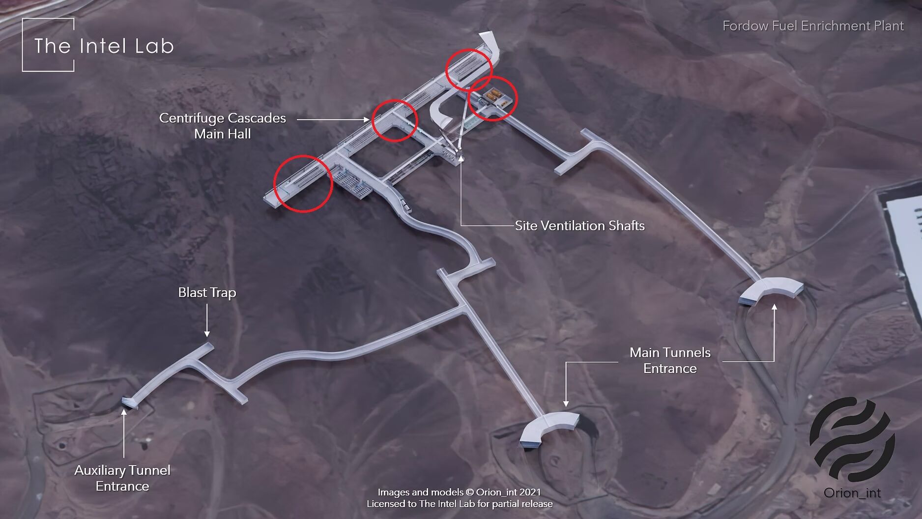 Một mục tiêu thay thế và khả thi hơn sẽ là nhắm vào các đường hầm và lối vào của Fordow. Hai lối vào chính tương đối nông và có thể bị vô hiệu hóa bằng các cuộc tấn công chính xác, đặc biệt là nếu bom va chạm ở góc tối ưu. Một cuộc tấn công thành công có thể làm sập hoặc chặn 20–30 mét đường hầm, làm gián đoạn việc tiếp cận trong nhiều ngày hoặc nhiều tuần. Tuy nhiên, điều quan trọng cần lưu ý là Fordow được cho là có ít nhất 3 đến 5 lối vào đã biết, một số trong đó có thể là dự phòng hoặc được thiết kế để tiếp cận sau cuộc tấn công.