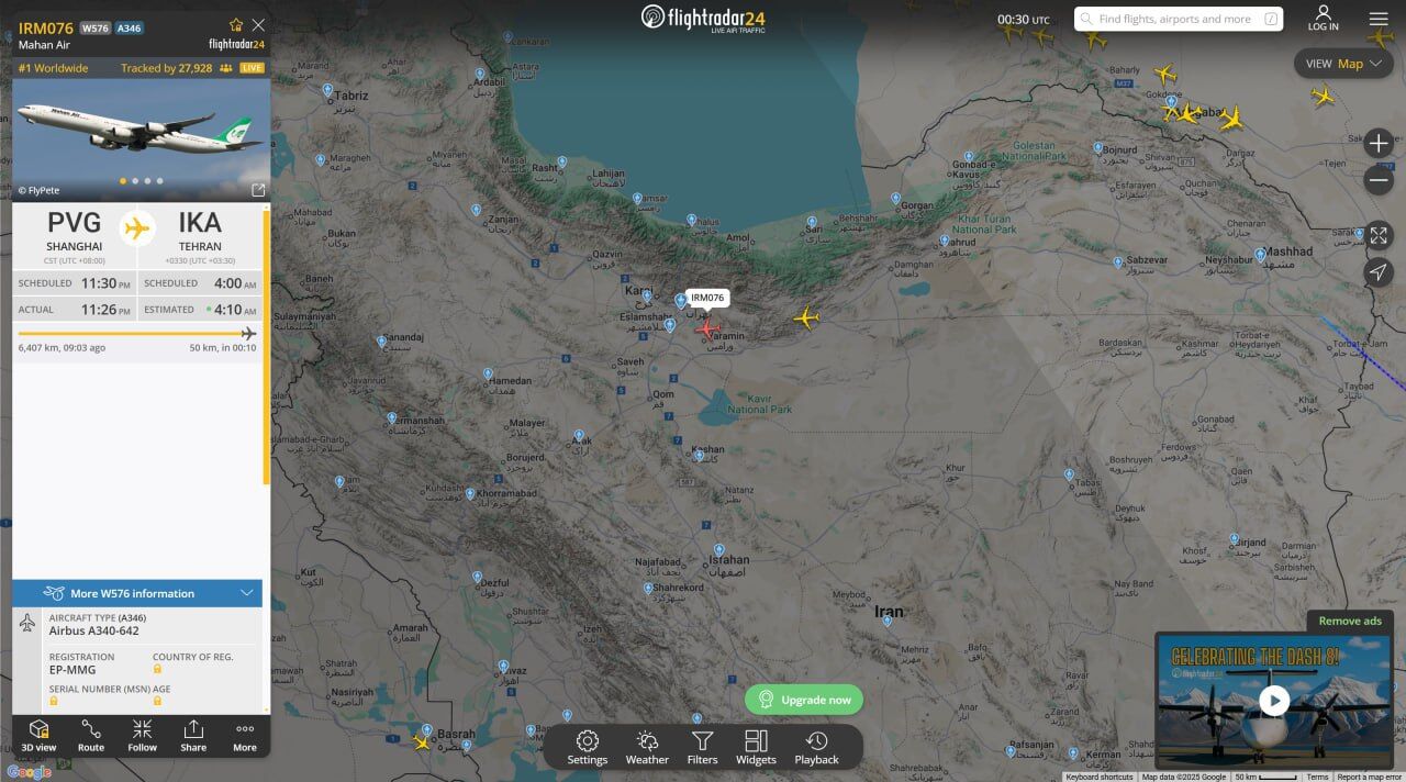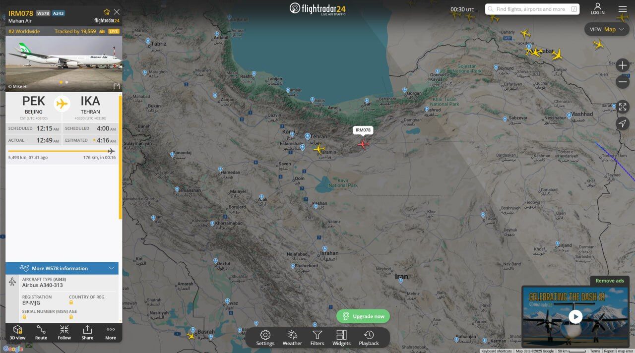 Hai máy bay đều thuộc sở hữu của công ty tư nhân Iran Mahan Air., cất cánh từ Thượng Hải và Bắc Kinh hướng về Tehran.