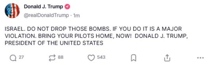 "THE TIMES OF ISRAEL: Trong lời lẽ thô tục, Trump chỉ trích Israel vì tấn công Iran, nói rằng điều đó vi phạm lệnh ngừng bắn"