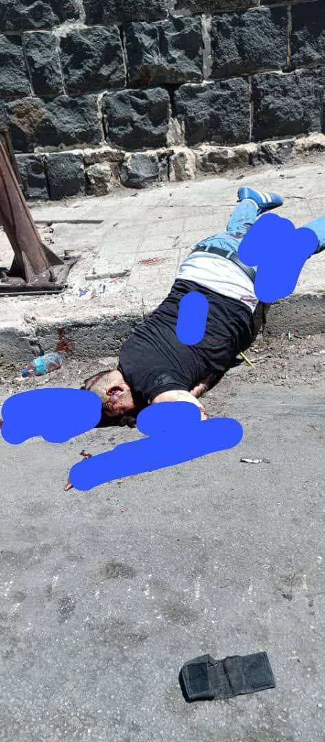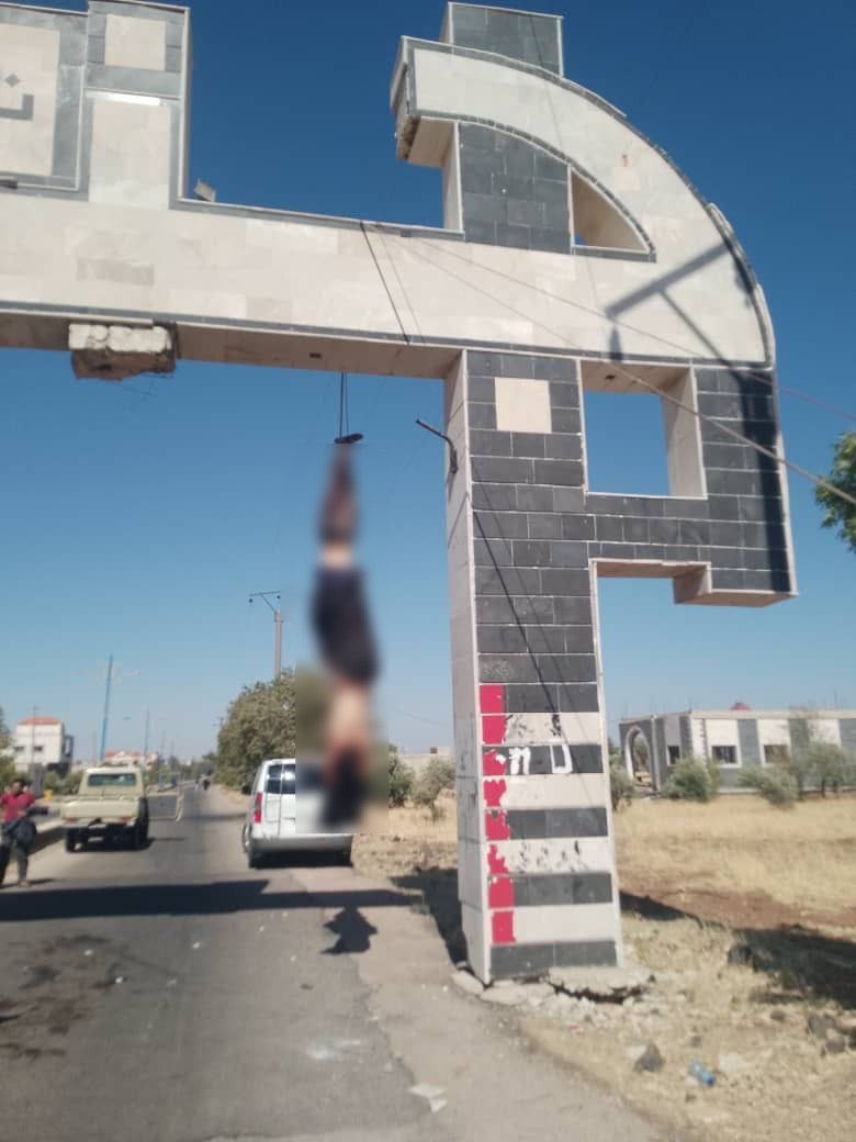 Những kẻ ly khai Druze treo cổ một thành viên của bộ tộc Ả Rập tại cổng thành phố Suwayda.