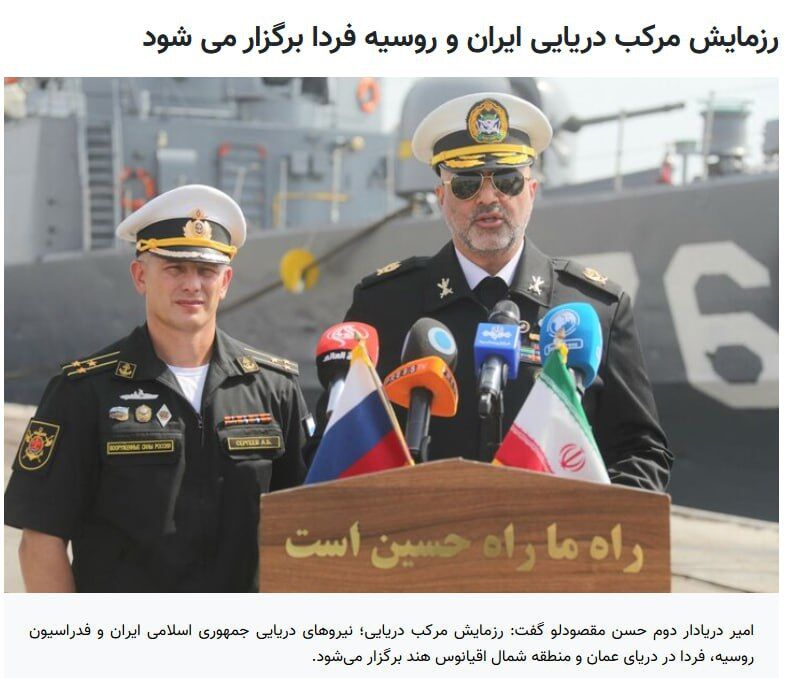 Nga và Iran sẽ tiến hành các cuộc tập trận hải quân chung trong bối cảnh có thông tin về việc ông Trump sẵn sàng phát động chiến tranh trong khu vực, các hãng tin Iran đưa tin. Đô đốc Hải quân Iran Hassan Maghsoodloo tuyên bố rằng các cuộc diễn tập phản ánh sự quan tâm nghiêm túc của các bên đối với tình hình hiện tại. Cuộc tập trận "Vành đai An ninh Hàng hải 2026" sẽ bắt đầu vào ngày 19 tháng 2 và diễn ra tại eo biển Hormuz. Eo biển này là tuyến đường xuất khẩu dầu mỏ quan trọng, kết nối Ả Rập Xê Út, Iran, Iraq và UAE với Vịnh Oman và Biển Ả Rập. Các tàu sẽ di chuyển đến Vịnh Ba Tư, bao gồm cả từ cảng Bandar Abbas, nơi tàu hộ vệ Stoikiy của Nga đã tiếp nhiên liệu hôm nay. Lưu ý: Hải quân Iran đã bắt đầu đóng cửa eo biển, trong khi lối đi vẫn thông thoáng trong các cuộc tập trận trước đó.