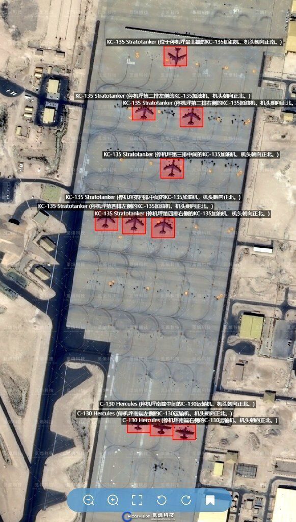 Hình ảnh vệ tinh về căn cứ không quân Al Udeid của Mỹ tại Qatar vào ngày 10 và 22 tháng 2 cho thấy Không quân Mỹ đang di chuyển máy bay của mình để tránh nguy cơ bị Iran tấn công.
