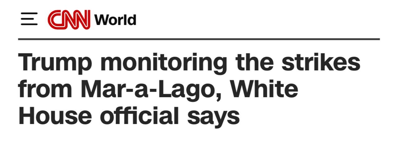 "Theo một phát ngôn viên Nhà Trắng, Trump đang theo dõi các cuộc tấn công từ Mar-a-Lago": Trump hiện đang theo dõi các cuộc tấn công của quân đội Mỹ vào Iran.
