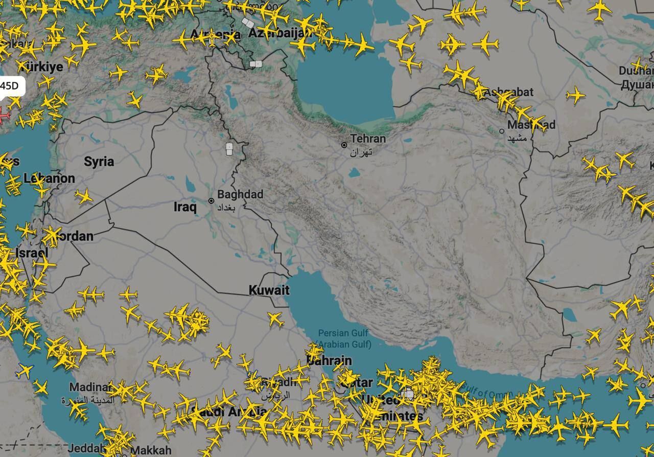 Một số lượng lớn máy bay chiến đấu trong không phận Iraq, đang hướng về phía Iran.