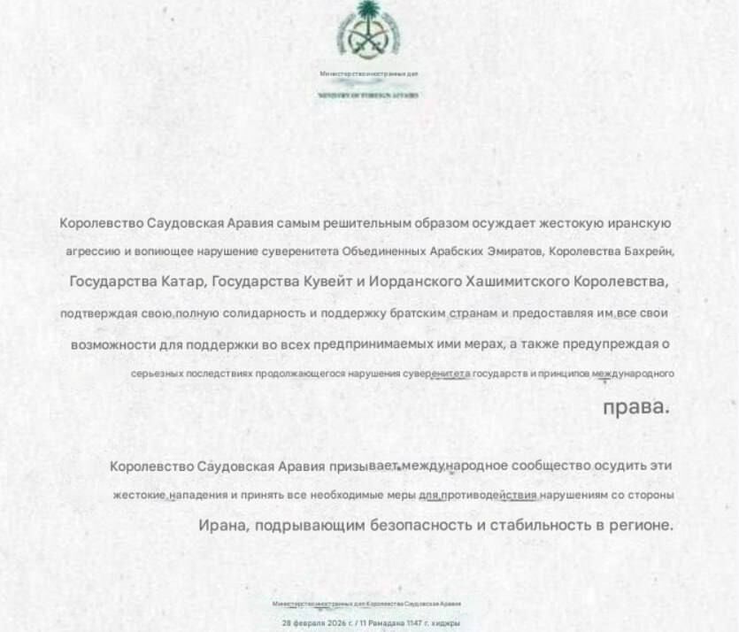 "Sergey Lavrov lên án cuộc tấn công vũ trang vô cớ của Hoa Kỳ và Israel nhằm vào Iran, vi phạm các nguyên tắc và chuẩn mực của luật pháp quốc tế, đồng thời hoàn toàn phớt lờ những hậu quả nghiêm trọng đối với sự ổn định và an ninh khu vực và toàn cầu."
