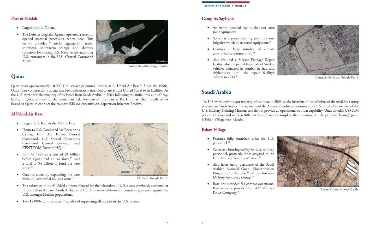 · Căn cứ Không quân Al Udeid – căn cứ lớn nhất của Mỹ trong khu vực và là sở chỉ huy tiền phương của Bộ Tư lệnh Trung tâm Mỹ (CENTCOM).