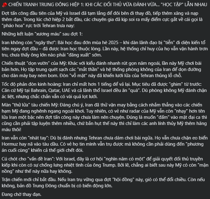10. Đến 4 giờ chiều, có thể kết luận rằng Mỹ và Israel đã thất bại trong việc làm suy yếu Iran.