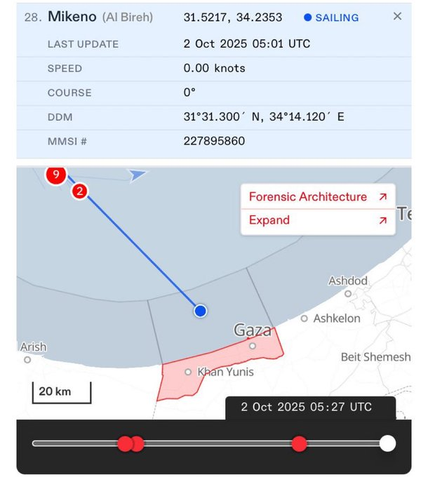 Bất chấp các mối đe dọa quân sự của Israel và tình trạng gián đoạn liên lạc liên tục, Đoàn tàu Global Sumud vẫn tiến về Gaza, hiện phải mất khoảng 30 giờ nữa mới tới được bờ biển của khu vực này.