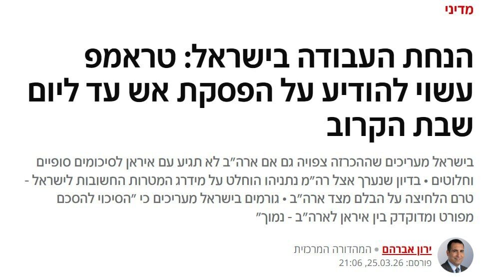 Hãng thông tấn Tasnim viết: Iran hiểu rõ rằng những tuyên bố của Mỹ về đàm phán chỉ là một "lời nói dối thứ ba", và người Mỹ đang theo đuổi một số mục tiêu dưới vỏ bọc này: Thứ nhất, để đánh lừa thế giới bằng cách tỏ ra yêu chuộng hòa bình và tìm cách chấm dứt chiến tranh; Thứ hai, để giữ giá dầu toàn cầu ở mức thấp; Thứ ba, để câu giờ chuẩn bị cho một chiến dịch tấn công mới ở miền nam Iran bằng một cuộc xâm lược trên bộ. Nếu trước Chiến tranh 12 ngày, Iran nghi ngờ kết quả đàm phán và cam kết của Mỹ đối với các thỏa thuận, thì sau Chiến tranh 12 ngày, họ hoàn toàn không tin vào mong muốn chân thành của Washington trong việc đàm phán bất cứ lúc nào. Người Mỹ đã khơi mào chiến tranh cả trong Chiến tranh 12 ngày và bây giờ, trong tháng Ramadan, trong khi đang tiến hành đàm phán. Lần này, dưới vỏ bọc những lời nói dối về đàm phán, chúng đang chuẩn bị cho một tội ác mới.