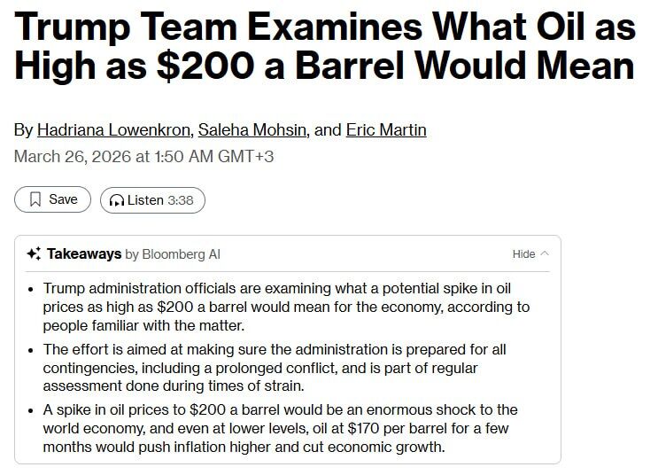 Trump đang chuẩn bị cho khả năng giá dầu tăng lên 200 USD/thùng, — Bloomberg