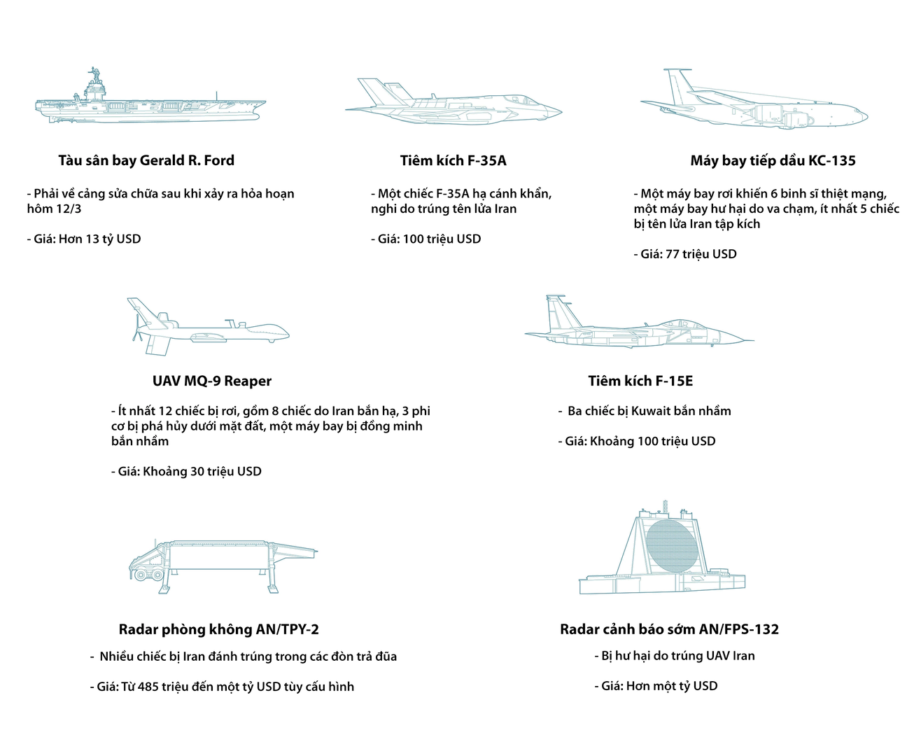Cùng ngày, người phát ngôn Bộ Chỉ huy Trung tâm Khatam al-Anbiya của Iran - ông Ebrahim Zolfaghari - cho biết, một máy bay tiếp nhiên liệu trên không của quân đội Mỹ đã bị phá hủy và ba chiếc khác bị hư hại sau cuộc tấn công của Iran vào Căn cứ Không quân Prince Sultan của Mỹ ở Ả-rập Xê-út.