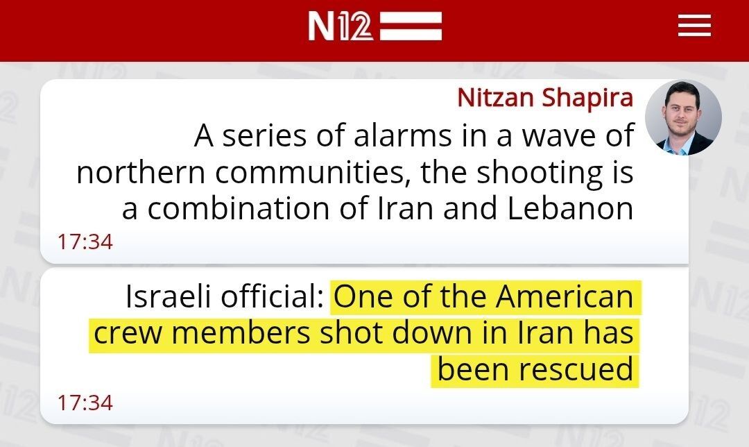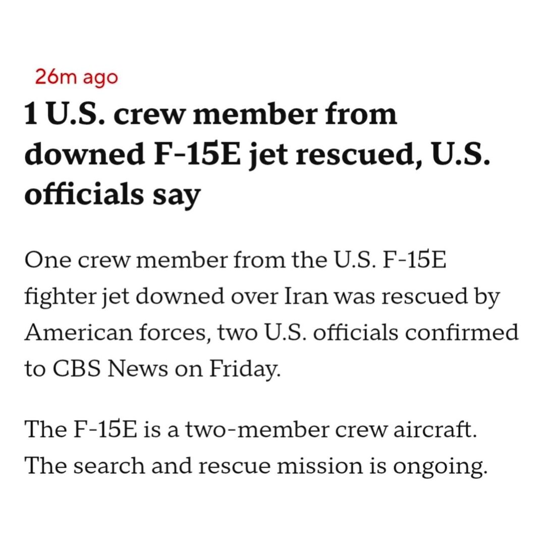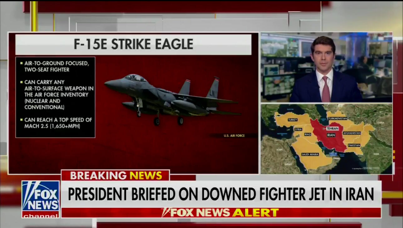 CNN: Máy bay Mỹ bị bắn rơi: Ba nguồn tin của Mỹ cho biết, một máy bay chiến đấu của Mỹ đã bị bắn rơi trên không phận Iran, xác nhận các báo cáo của truyền thông nhà nước Iran. Các nguồn tin cho biết lực lượng Mỹ đã tiến hành các hoạt động tìm kiếm và cứu hộ. Phân tích của CNN về các hình ảnh do truyền thông Iran công bố cho thấy đó là máy bay F-15.