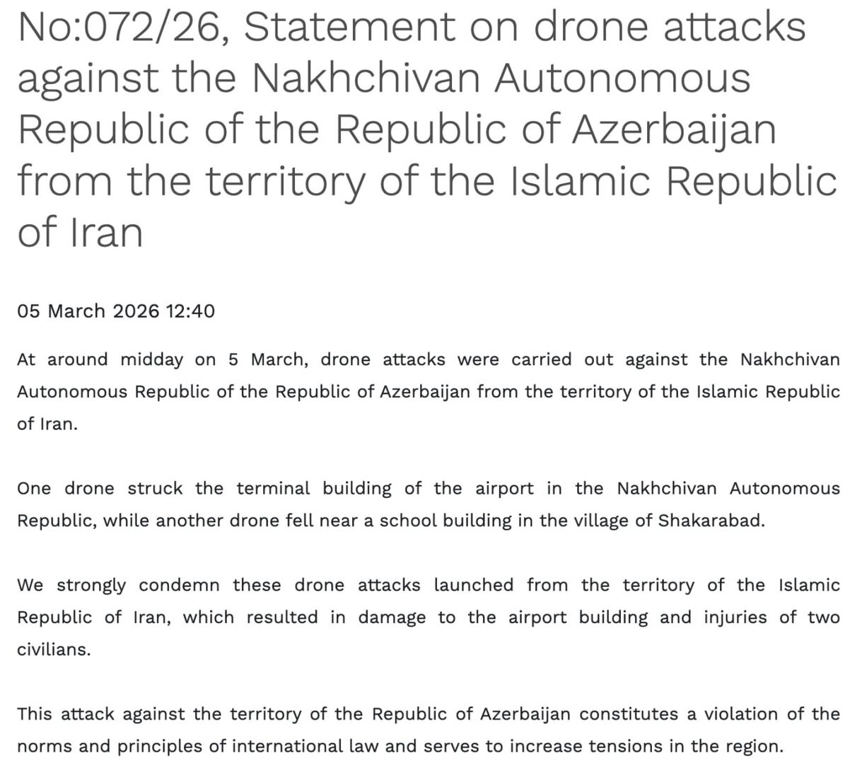 Baku đã triệu tập đại sứ Iran và cảnh báo rằng nước này "bảo lưu quyền thực hiện các biện pháp đáp trả thích đáng".