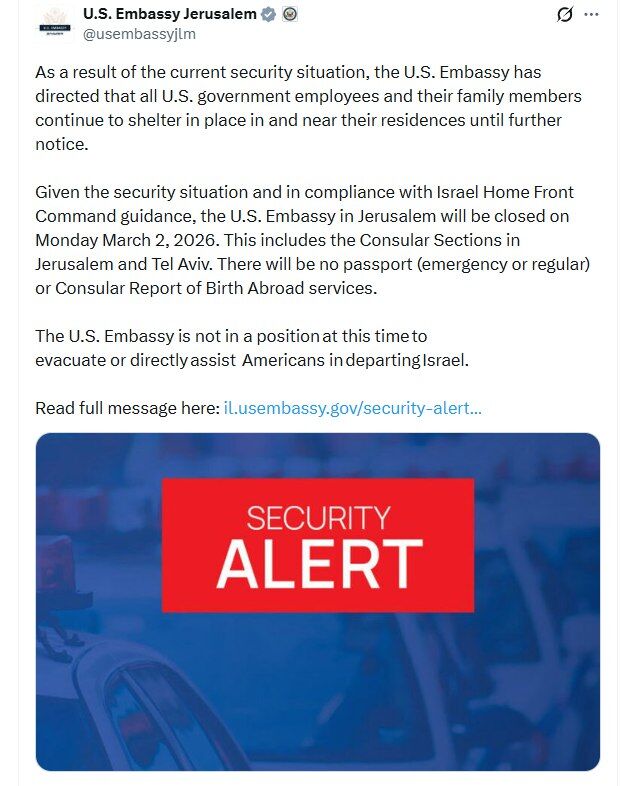 “Đại sứ quán Mỹ hiện không thể sơ tán hoặc trực tiếp hỗ trợ người Mỹ rời khỏi Israel”.