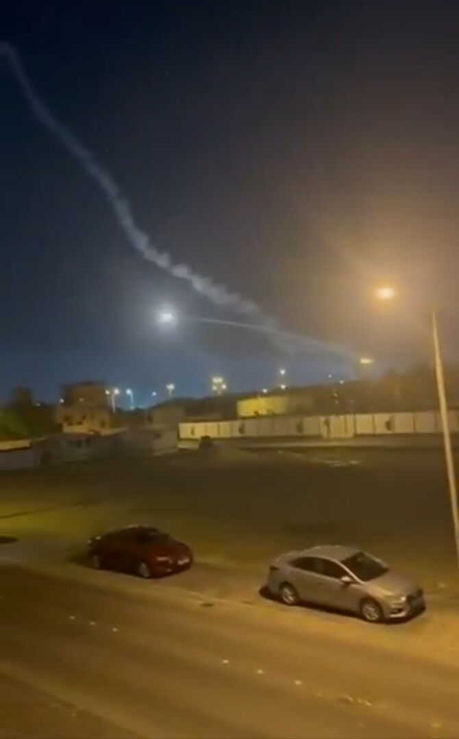 1 tên lửa nhắm vào Tel Aviv. Tên lửa này tách thành nhiều đầu đạn chùm trên bầu trời thành phố, một số đã bị trúng mục tiêu.