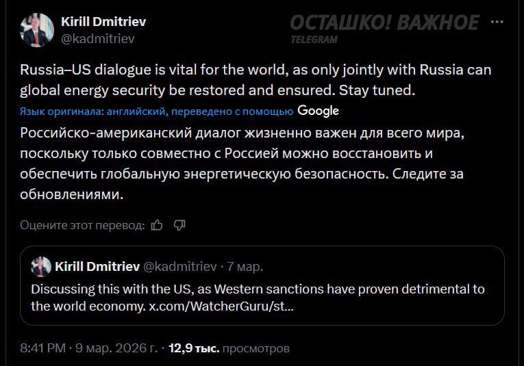 “Đối thoại Nga-Mỹ rất quan trọng đối với toàn thế giới, bởi vì chỉ có cùng với Nga, chúng ta mới có thể khôi phục và đảm bảo an ninh năng lượng toàn cầu. Hãy theo dõi tin tức.”