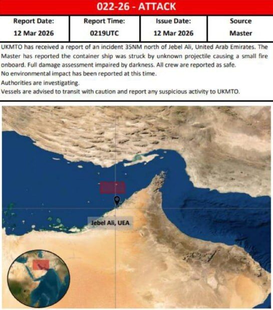 Theo UKMTO, một tàu container khác đang bốc cháy gần eo biển Hormuz sau khi bị trúng một vật thể lạ.