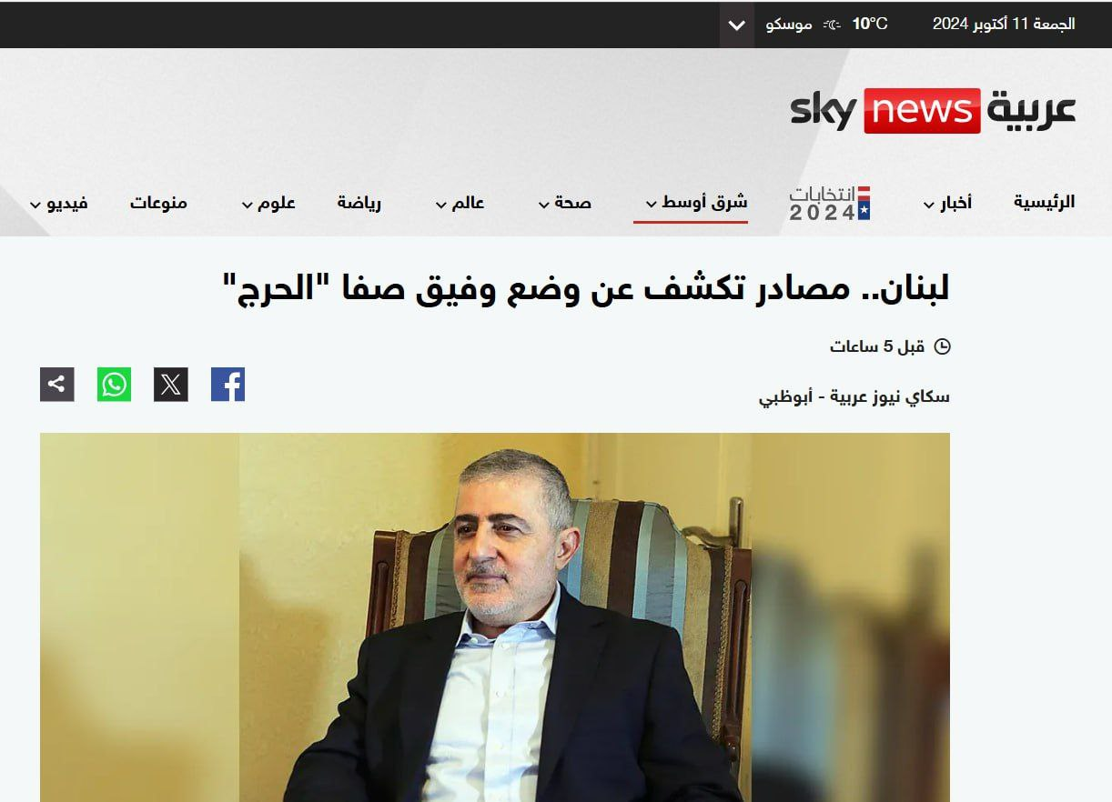 Các nguồn tin nói với hãng này rằng Wafik Safa, người bị Israel nhắm tới trong cuộc không kích ở trung tâm thủ đô Lebanon, "đã bị thương nặng và đang trong tình trạng nguy kịch"